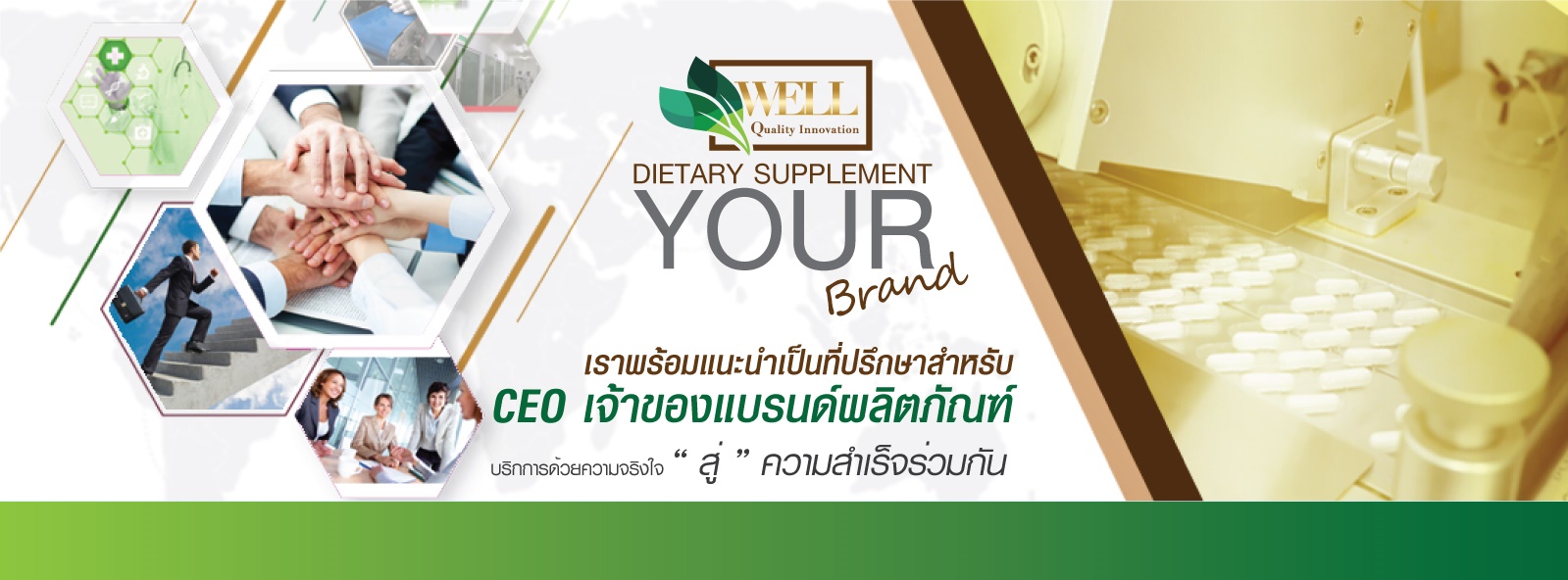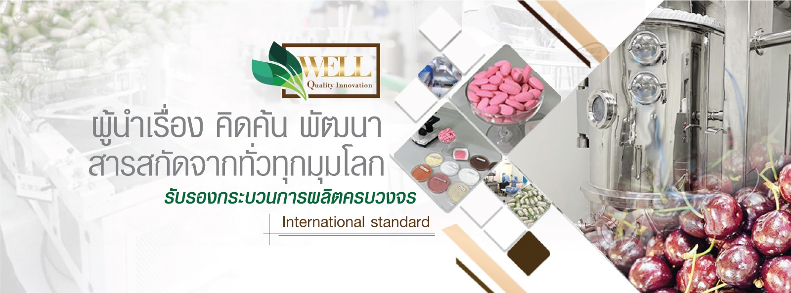 บริษัท เวลควอลิตี้ อิโนเวชั่น จำกัด เป็นบริษัทฯผู้จัดหาสารสกัดวัตถุดิบจากธรรมชาติในรูปแบบต่างๆ โดยคิดค้นพัฒนาสูตรผลิตภัณฑ์เสริมอาหาร พัฒนาผลิตภัณฑ์ด้านนวัติกรรมสารสกัดจากธรรมชาติต่างๆ โดยจัดหาสารสกัดได้จากทั่วทุกมุมโลกตามความต้องการของลูกค้า ให้ทันเทรนด์สินค้าท้องตลาดปัจจุบัน เพื่อเพิ่มกลยุทธ์จุดเด่นของสินค้าที่ลูกค้าตั้งใจพัฒนาออกสู่ท้องตลาดอย่างเต็มความสามารถ